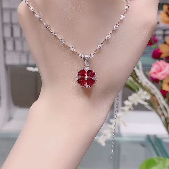 This stunning flower pendant necklace features rich red crystals arranged in a blooming floral design, symbolizing love, passion, and elegance.